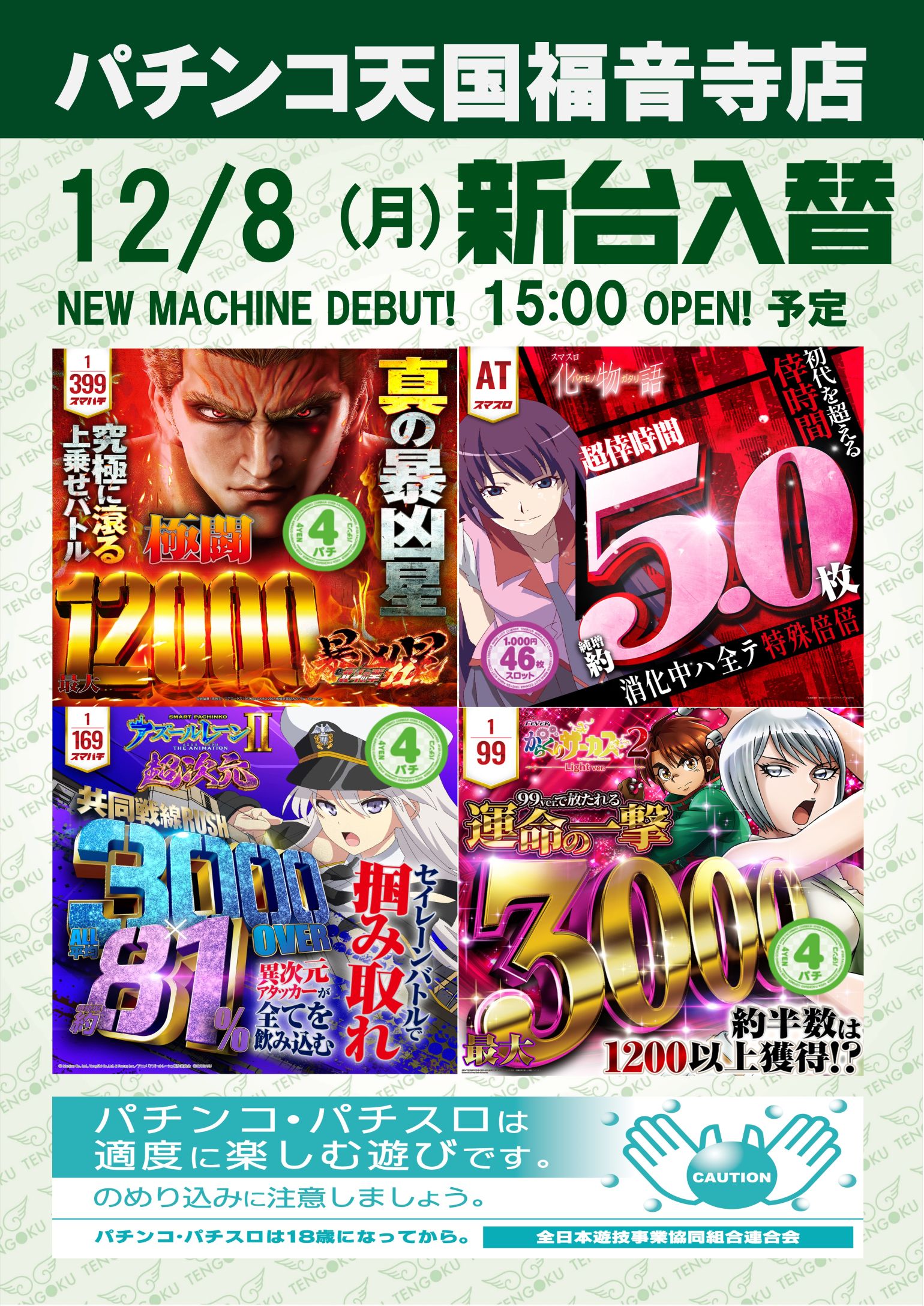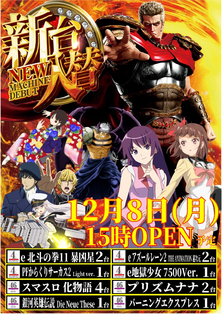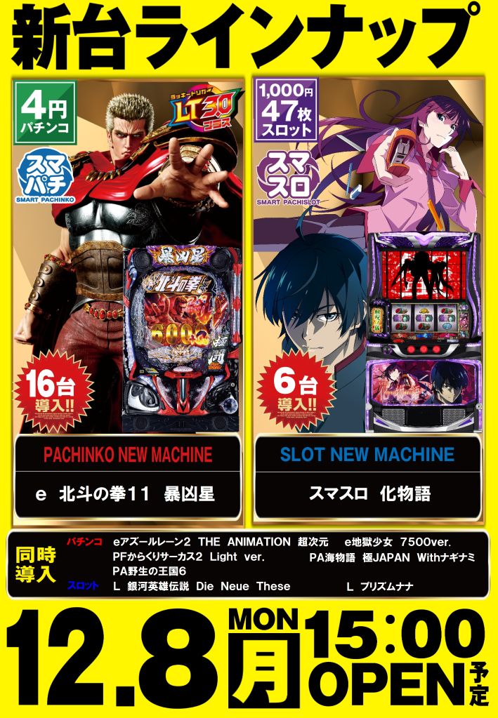 12/8(月) 新台入替 新台入替 朝生田店 朝生田店12/8(月)新台入替をラッキードルバくんがお知らせ! 🎰パチンコ天国朝生田店新台入替のご案内🎉 やっほー!ボク、ラッキードルバくんだよ😊✌️ みんなお待たせ~~‼️ 📅12月...
