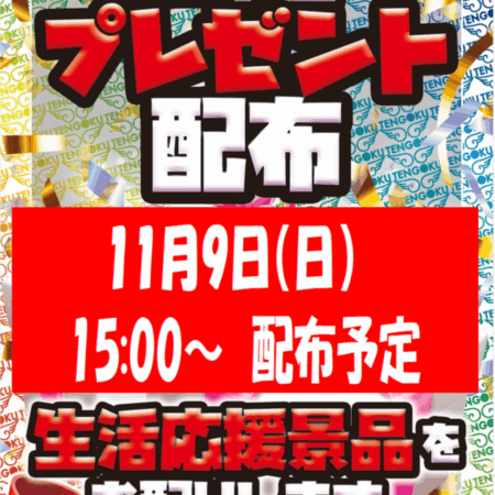 11月9日(日)・10日(月)・11日(火) 全館9時開店