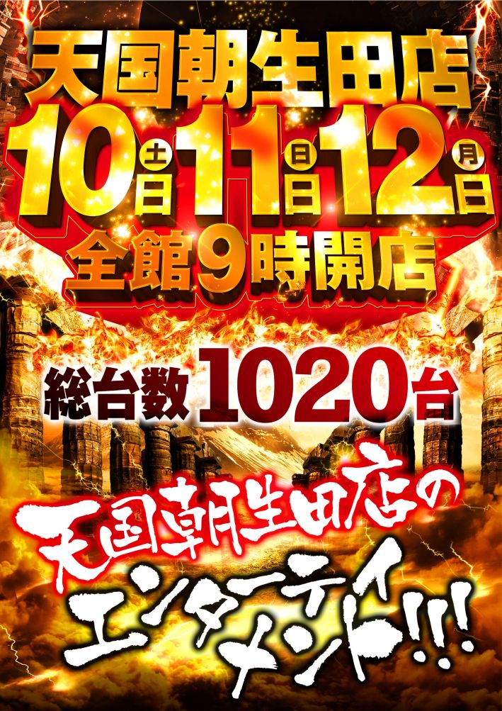 天国朝生田店 1月10日,11日,12日の3日間 朝9時開店 朝生田店のエンターテイメント!