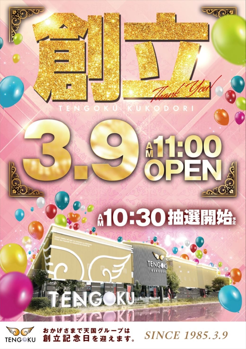 天国空港通店 3月9日(月) 天国グループ創業周年日 11時オープン!スロットがますますオモシロイ!