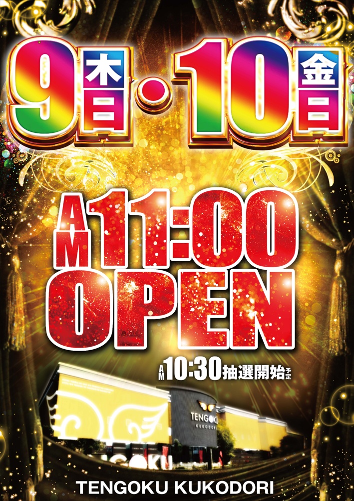 10/9,10の2日間は天国空港通店11:00オープン予定!