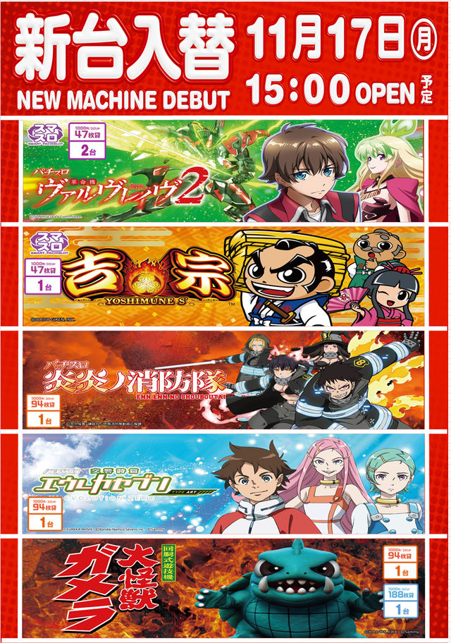 11月17日(月)は、ぜひ天国小松店で新台をチェックしてね😆‼️