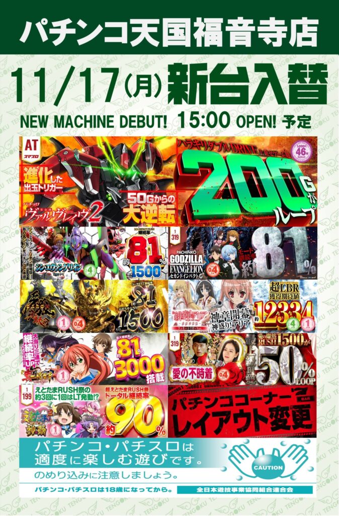 11月17日(月)は天国福音寺店でワクワクしちゃおう😆‼️