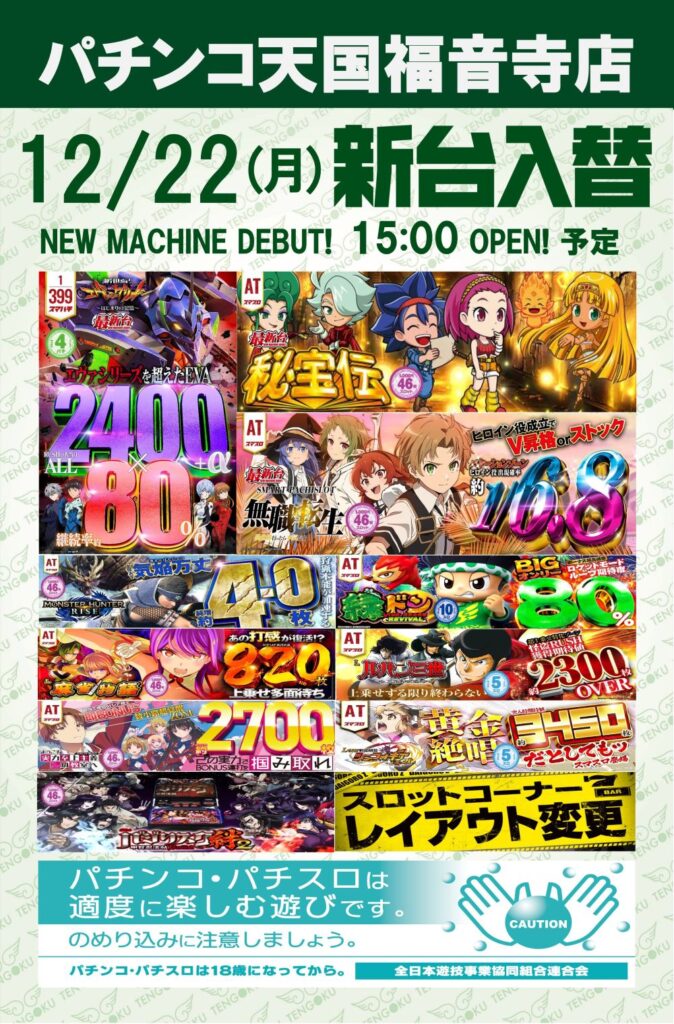 12月22日(月)は天国福音寺店でワクワクしちゃおう😆‼️