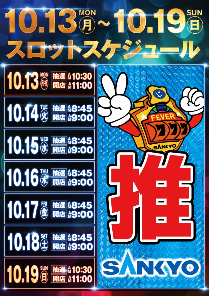 10/6(月)導入新台ラインナップ